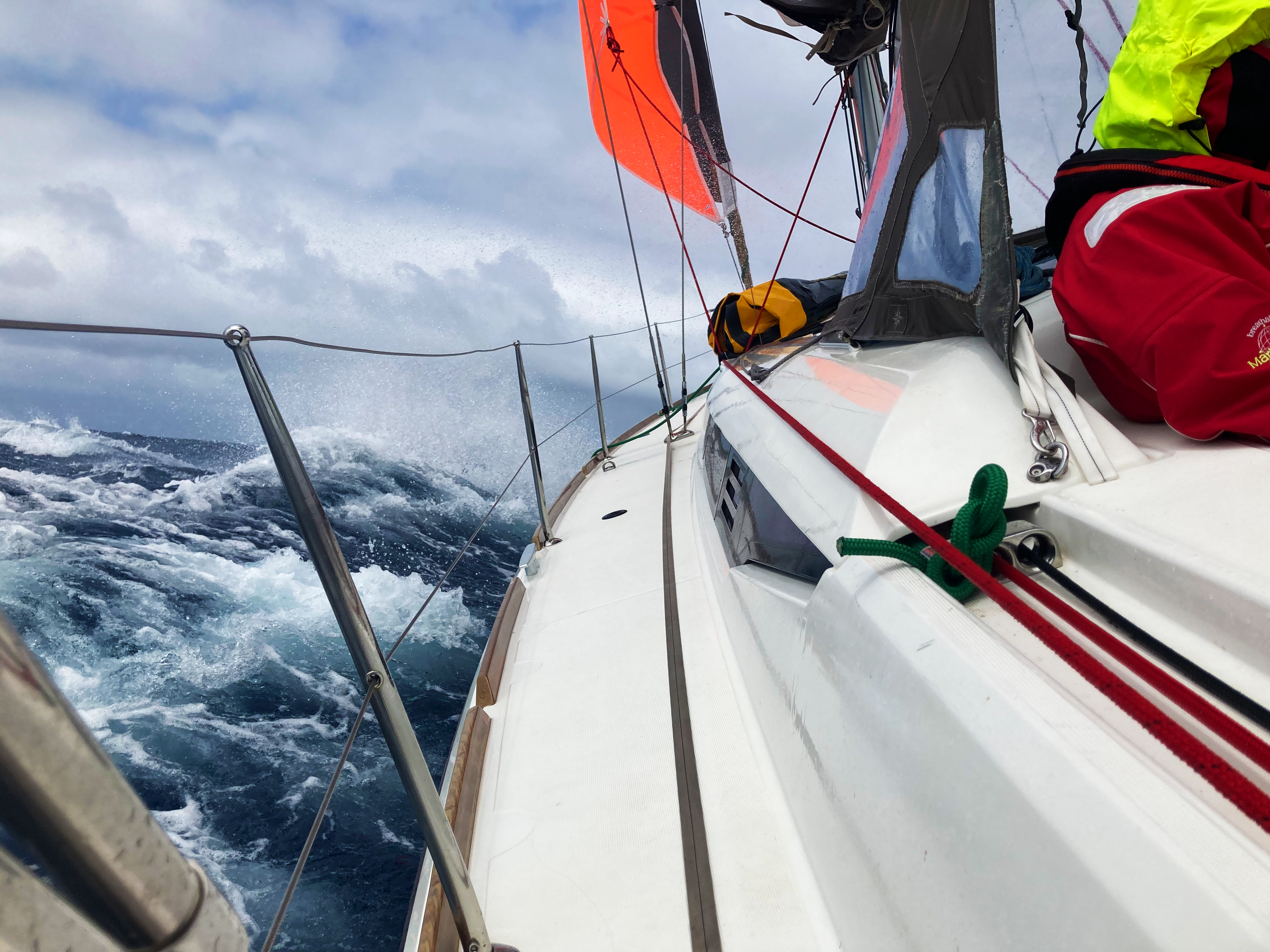 Montag 08:00 Uhr – ich beende meine Wache, leider ziemlich durchnässt. Eine Wellte hat mich überrascht bevor ich mich wegducken konnte und zusätzlich war die Garmasche meines linken Stiefels verrutscht. In etwa acht Stunden würden wir in die Marina einlaufen, weshalb ich einfach alles anlasse und mich auf die letzten freien Quadratmeter der Salon-Polsterlandschaft lege. Ein Powernap vor dem letzten Mittagessen auf See – und nach dem Anlegen endlich Duschen. Die letzte Dusche war bereits mehr als zwei Tage her, denn bei den Bedingungen die wir vorfanden war definitiv nicht daran zu denken. Das hätte dann wohl mit eleganten einem “Brian” geendet (sorry Mate, der musste sein…).