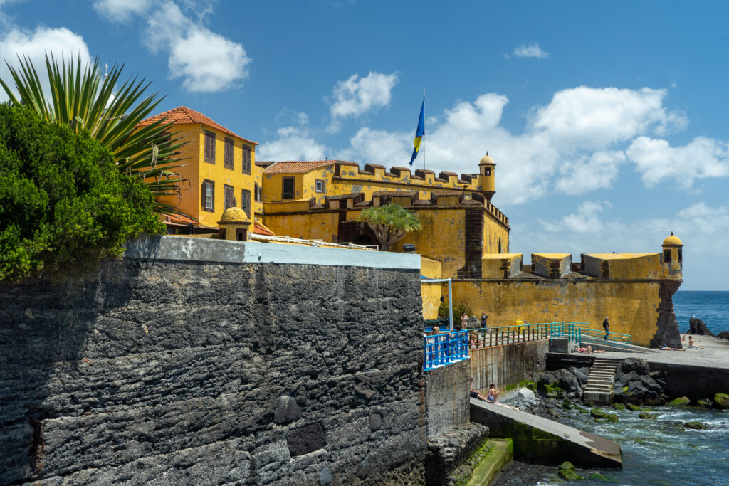 Als ich das nächste Mal an Deck gehe, sehe ich bereits die Umrisse der Blumeninsel und der Seegang beginnt sich zu beruhigen. Je mehr wir in die Abdeckung der Insel kommen, desto mehr fällt die Anspannung ab. Wir bergen das Sturmsegel und setzen wieder die Genua – zwar nicht in ihrer vollen Bracht aber gut zwei Drittel. Mit immer noch flotten 6-7 Knoten Fahrt nähern wir uns unserem Ausweichquartier, der Marina Quinta do Lorde. In der Hauptstadt Funchal werden leider die Pontoons erneuert, weswegen wir dort als Gäste nicht anlegen dürfen. Wir bergen die Segel und bereiten das Anlegen vor – trotz der immer wieder einfallenden Böen gestaltet sich dies problemlos und wir setzen unsere Füße wieder auf festen Boden.